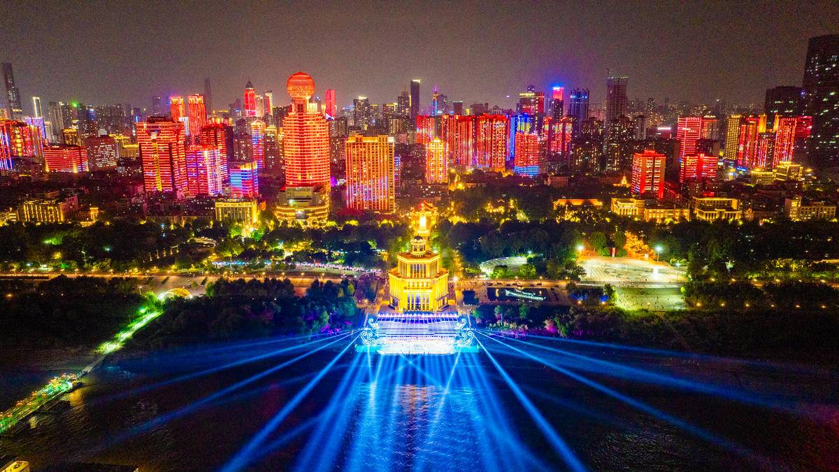 2024年9月10日晚,武汉两江四岸灯火璀璨、光影交织,长江文化艺术季开幕式彩排在武汉两江四岸持续上演。(湖北日报全媒记者 何宇欣 摄)