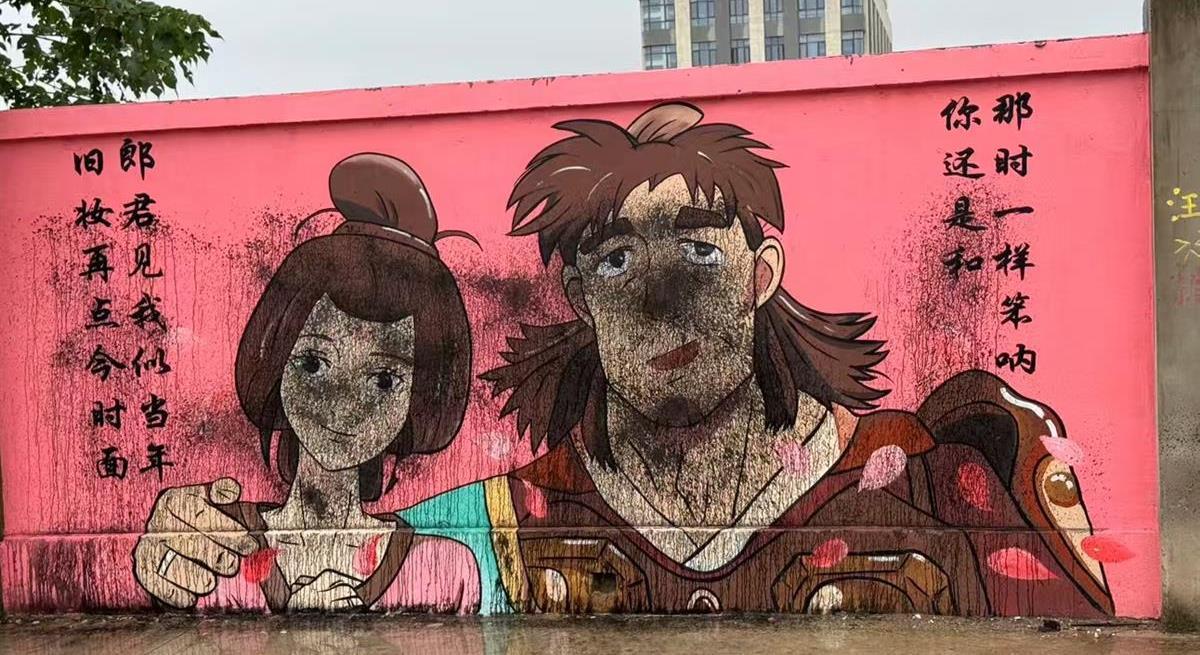 然而,就当曹伟夫妻的画作受到关注时,9月11日早上5时许,曹伟接到粉丝打来的电话,“对方说墙绘被人破坏了,当时我还以为是前一晚下雨,车辆路过时溅了泥水。”之后,曹伟到现场一看,才发现墙绘遭人泼漆损毁,黑漆根本无法擦抹干净。
