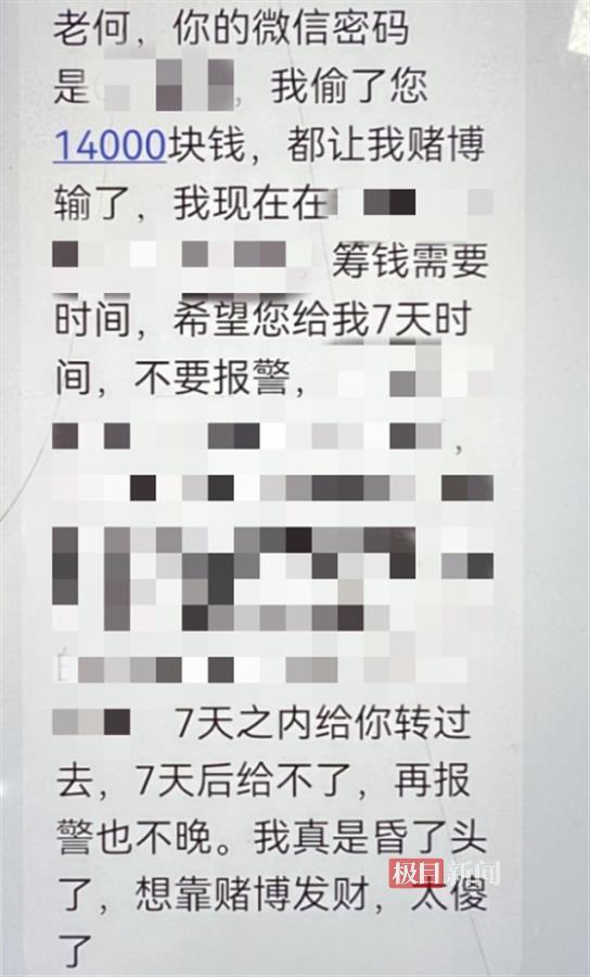 24日上午8时许,何先生收到了卢某发来的短信,被内容吓了一跳。“你的微信密码是XXX,我偷了你14000块钱……”何先生立刻向警方报案。
