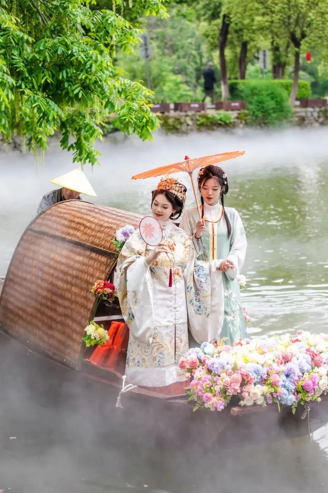 木兰水镇则以水为媒,打造了一场水上盛宴。浪漫河灯缓缓漂流,水上竹筏悠然穿梭,国风舞蹈在水面翩翩起舞。加特林烟花秀、非遗打铁花、火壶表演等精彩节目,让游客在水的柔情与火的热烈中欢度佳节。