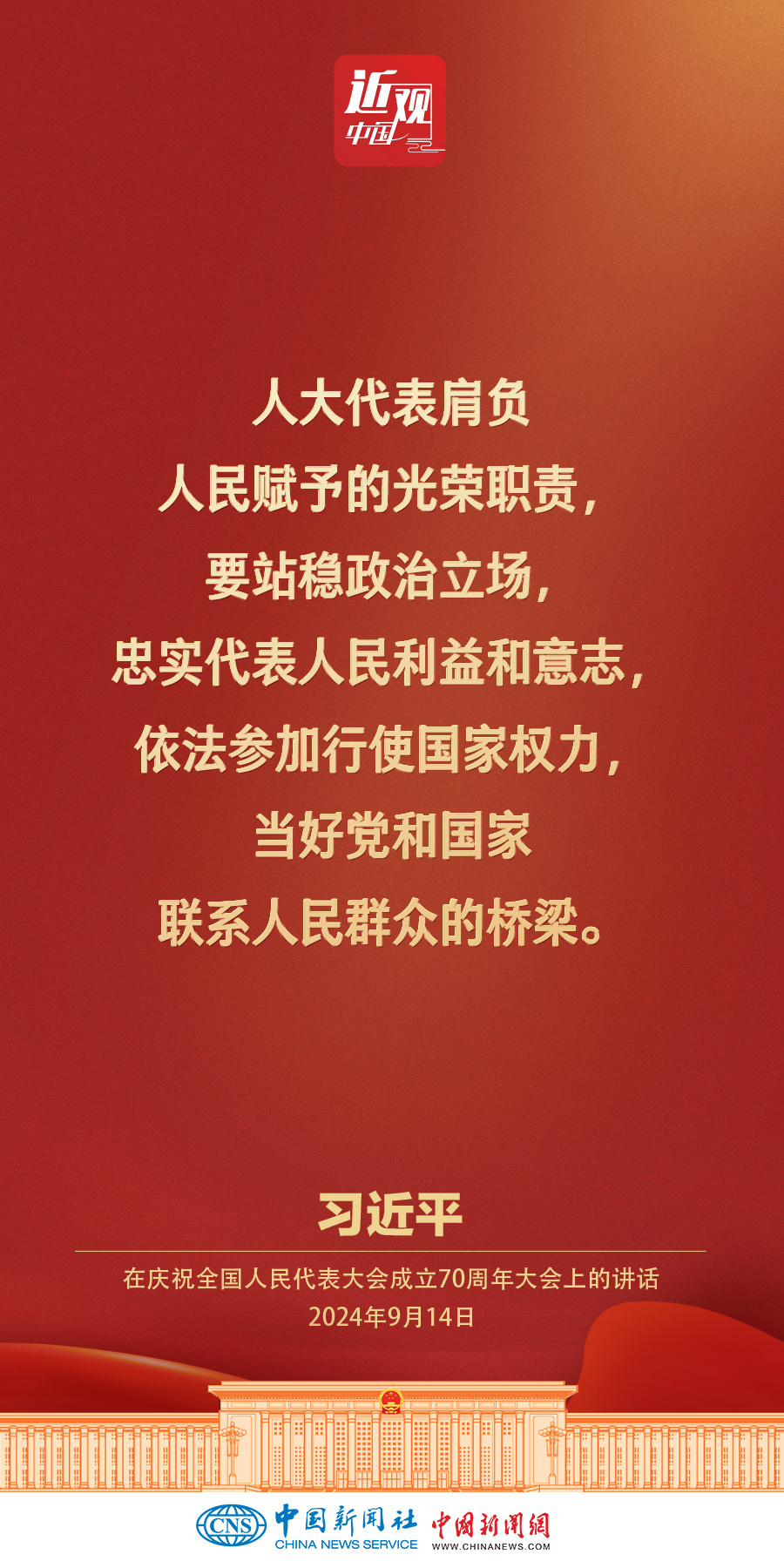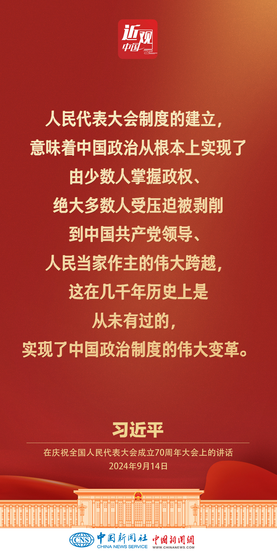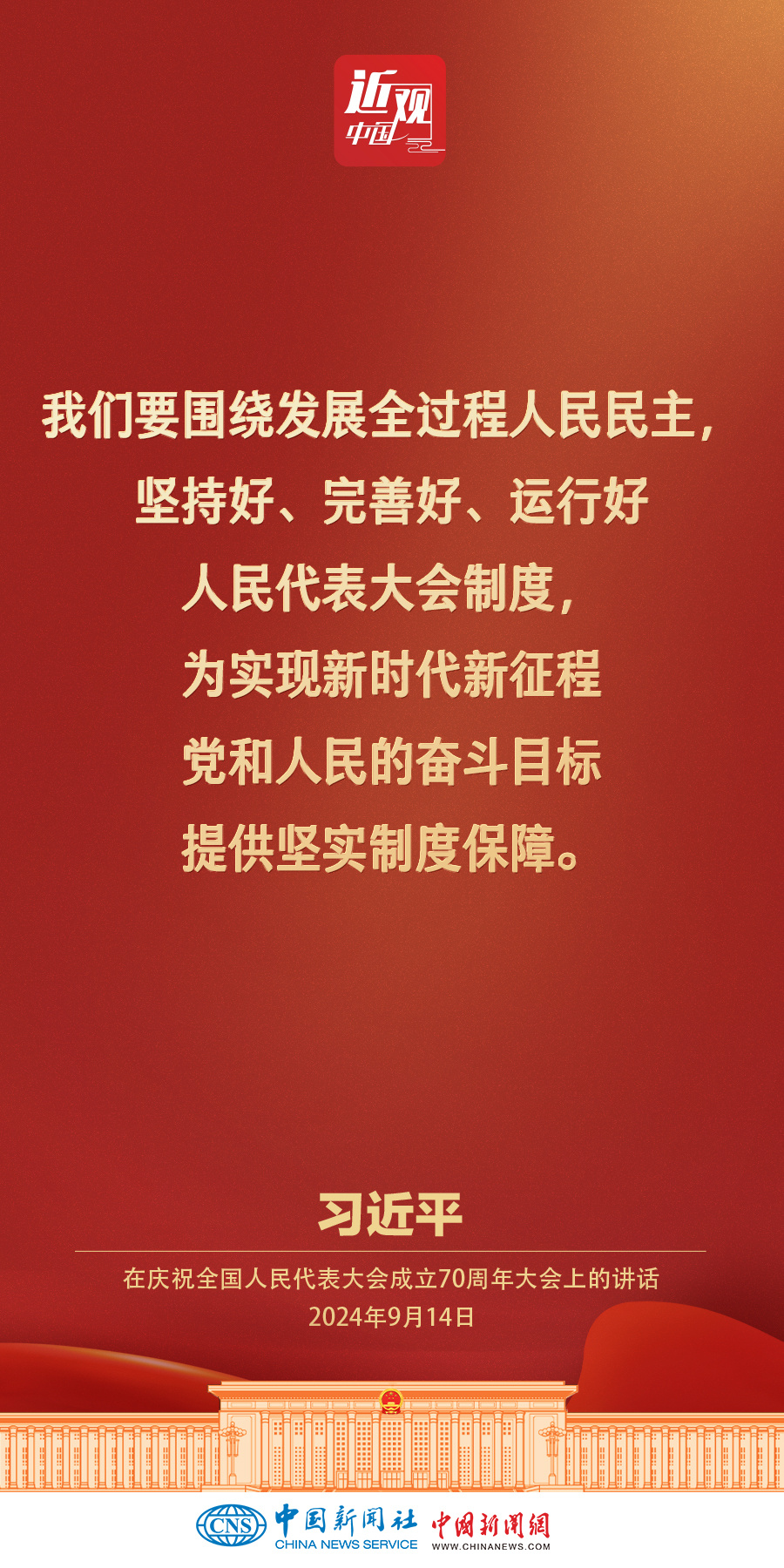 中共中央、全国人大常委会14日上午在人民大会堂隆重举行庆祝全国人民代表大会成立70周年大会。中共中央总书记、国家主席、中央军委主席习近平出席会议并发表重要讲话。他强调——