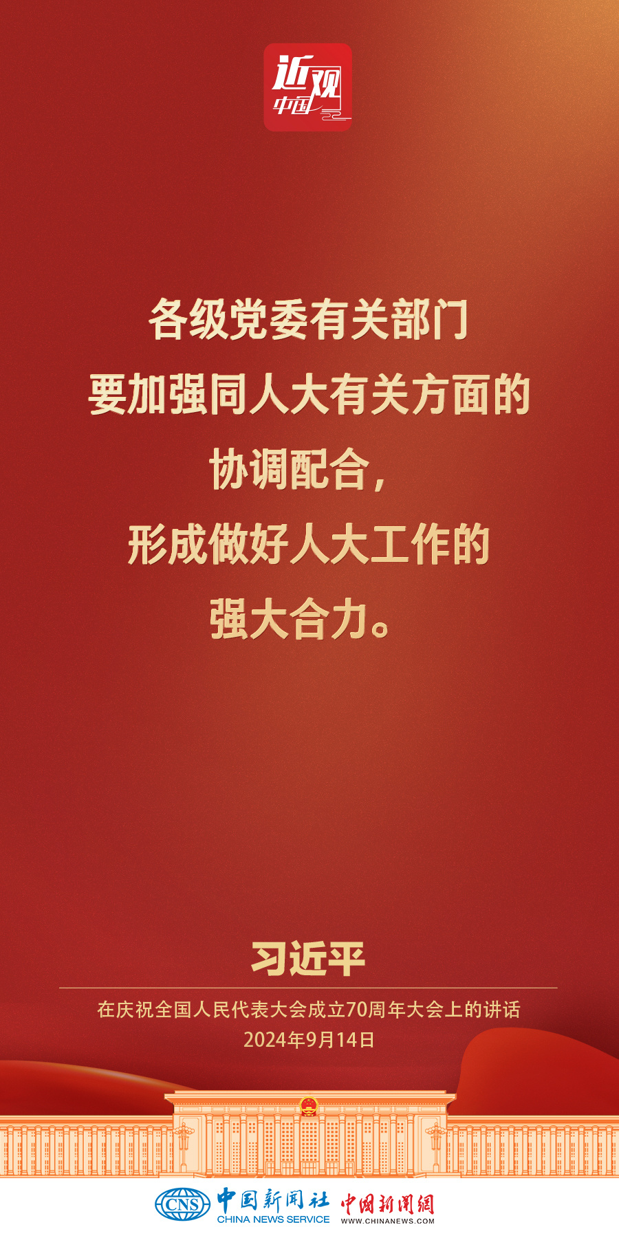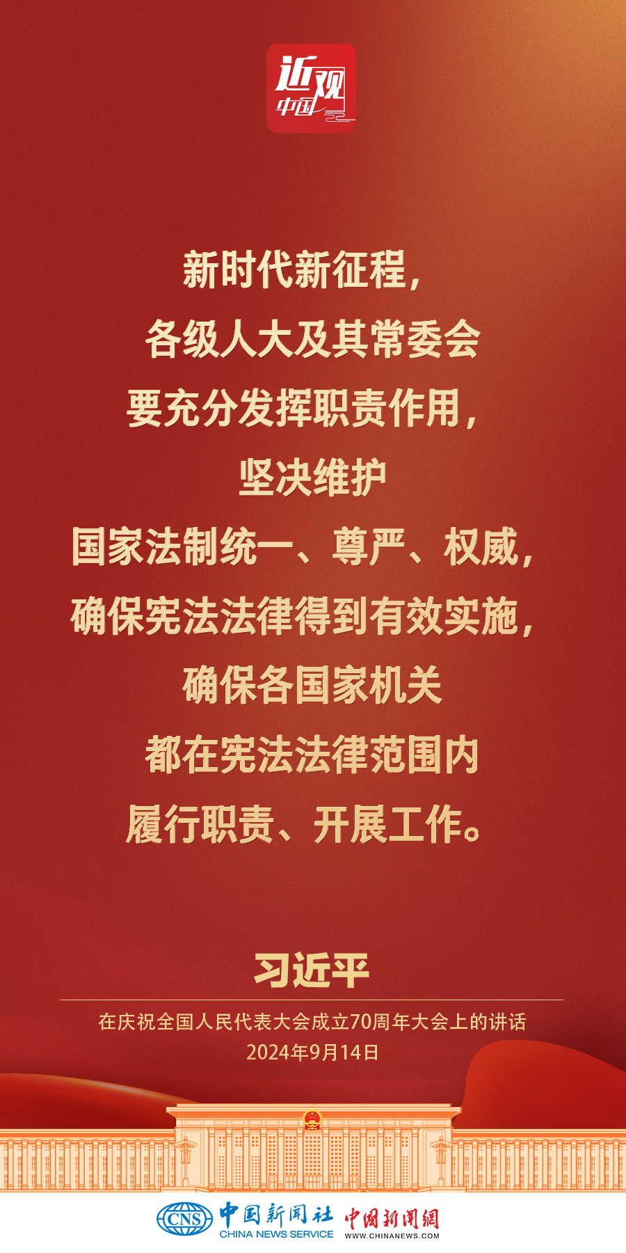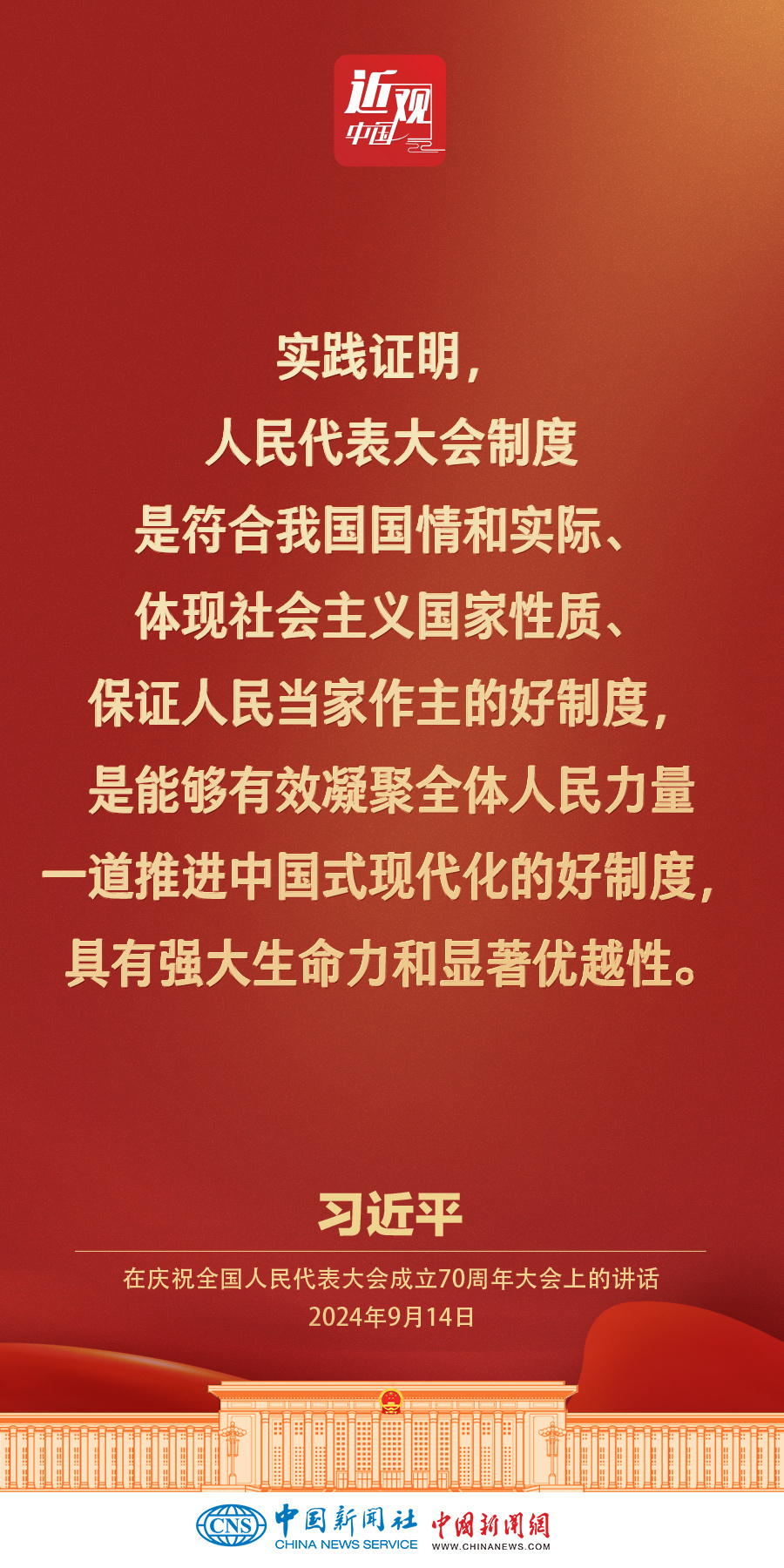 中共中央、全国人大常委会14日上午在人民大会堂隆重举行庆祝全国人民代表大会成立70周年大会。中共中央总书记、国家主席、中央军委主席习近平出席会议并发表重要讲话。他强调——