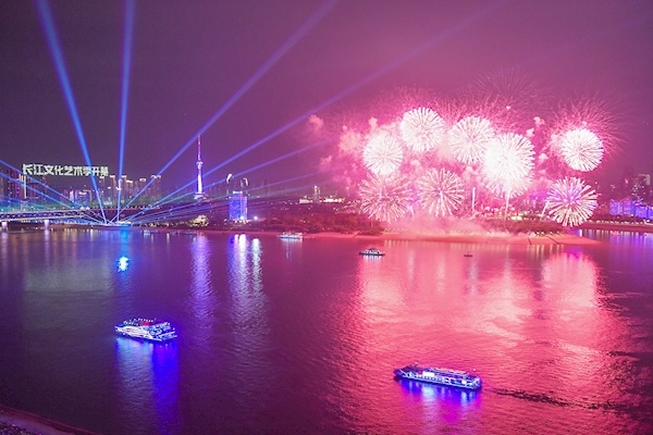 14日晚,由中共中央宣传部、文化和旅游部、中国文学艺术界联合会、中国作家协会指导,湖北省人民政府、水利部长江水利委员会、中国长江三峡集团有限公司共同主办的“长江文化艺术季”在大江之上拉开盛大的开幕图景——灯火点亮了长江,烟花照亮了长江,浑厚的历史积淀和青春的当代风貌更是喷薄而出,与长江共浪漫。