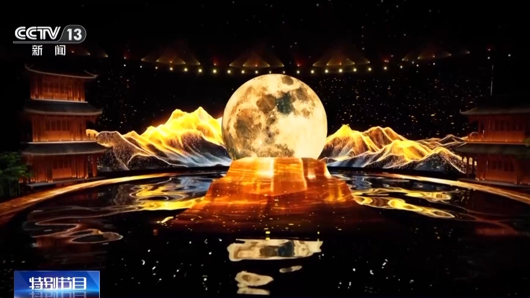 今年的总台中秋晚会搭建起360度环形舞台,以“自然湖景”为背景,着力体现“思想+艺术+技术”融合传播。