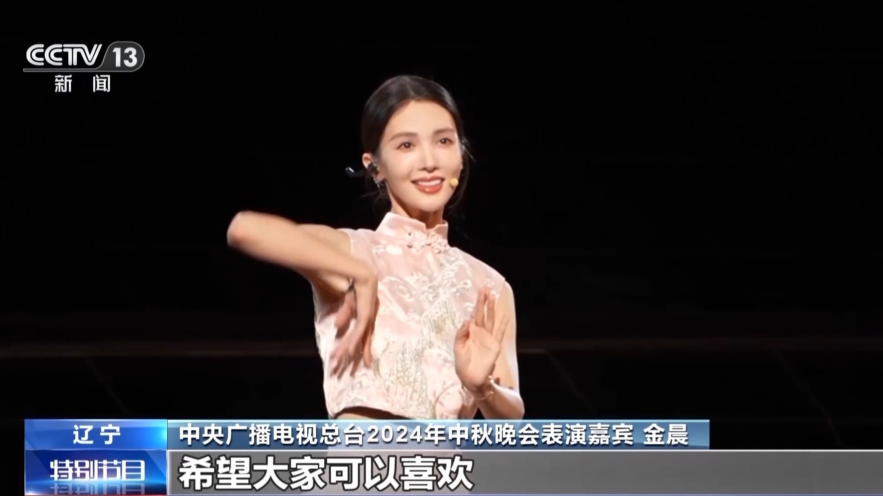 中央广播电视总台2024年中秋晚会表演嘉宾 金晨:一来到现场,我就觉得布景特别漂亮。首先大月亮就很有意境,然后还有在水边的亭子,人站在里面唱歌的时候,像画一样好看。这次带来的是一首非常好听的歌曲,希望大家可以喜欢。
