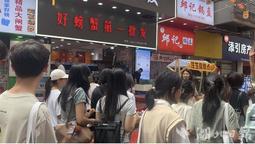 走进螃蟹街,随处能感觉到热闹和烟火气。收藏品市场的工作人员带来传统拓印工具,纷繁多样的螃蟹图案跃然纸上,引来人们阵阵欢呼;来自华中农业大学的大学生们身着汉服,与来往游客亲切互动;中秋猜灯谜、幸运大转盘、沉浸式钓螃蟹体验,特色活动应接不暇。“这条街变化太大了,好吃好玩又好看。”住在荣东社区的王女士,看着新绘制的彩绘墙忍不住称赞。