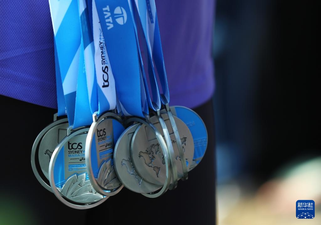 这是9月15日拍摄的悉尼马拉松完赛奖牌。新华社记者 马平 摄