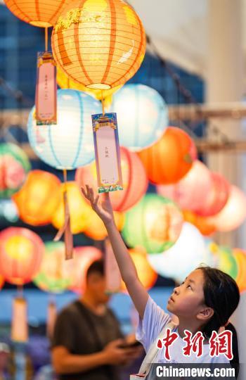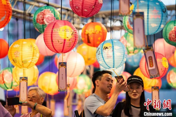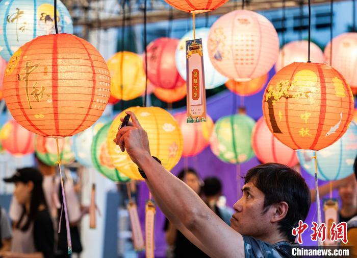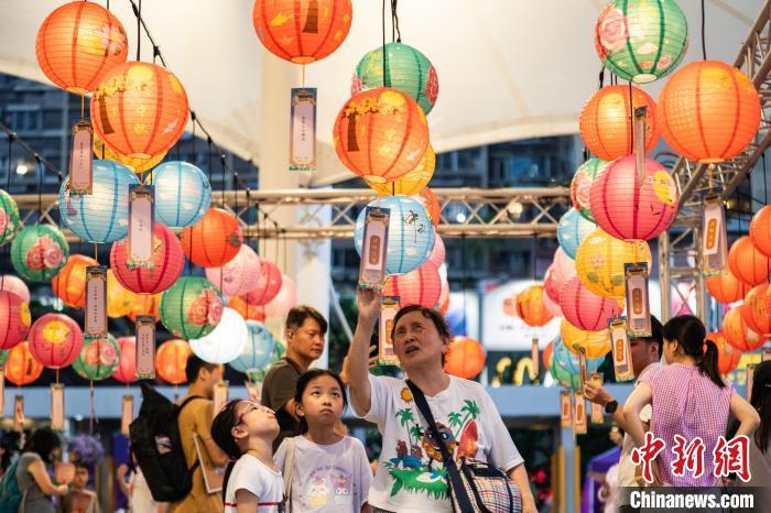 9月15日傍晚,香港市民游客在啬色园黄大仙祠“非遗荟萃彩灯节”上猜灯谜、欣赏节日布景,在浓郁氛围中度过中秋节前夕的周日时光。图为彩灯节的灯谜区域吸引市民游客流连其中。中新网记者 侯宇 摄