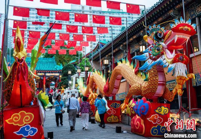 图为市民游客走进黄大仙祠欣赏彩灯。中新网记者 侯宇 摄