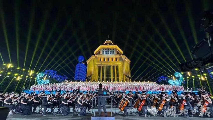 当晚,声乐系青年教师陈泳汐教授、蔡勉副教授与东方交响乐团、声乐系合唱团百名学生相聚在横渡长江博物馆江边广场,与湖北交响乐团及湖北省十二所高校的千名大学生们共唱《长江之歌》。音乐教育学院王子翔副教授倾情献演诗配乐《再话长江》。
