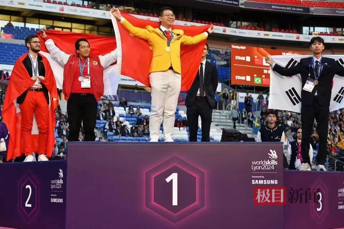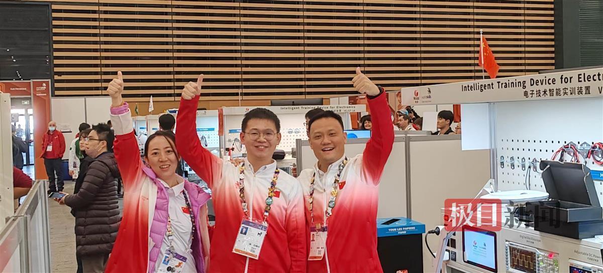 当晚的闭幕式现场,主持人多次高喊“from CHINA”。22岁的武汉市仪表电子学校教师曹博和21岁的湖北生态工程职业技术学院学生贾京,分别作为电子技术项目金牌得主、家具制作项目银牌得主,身披五星红旗站上领奖台,赢得全场欢呼。其中,曹博所获得的这枚金牌还是湖北代表团在世界技能大赛中拿下的首枚金牌,实现了“零的突破”。