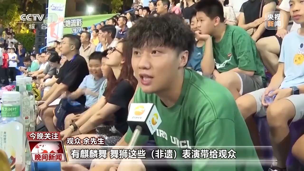 观众 余先生:有麒麟舞、舞狮这些非遗表演带给观众,给我们八方游客带来很精彩的赛事。