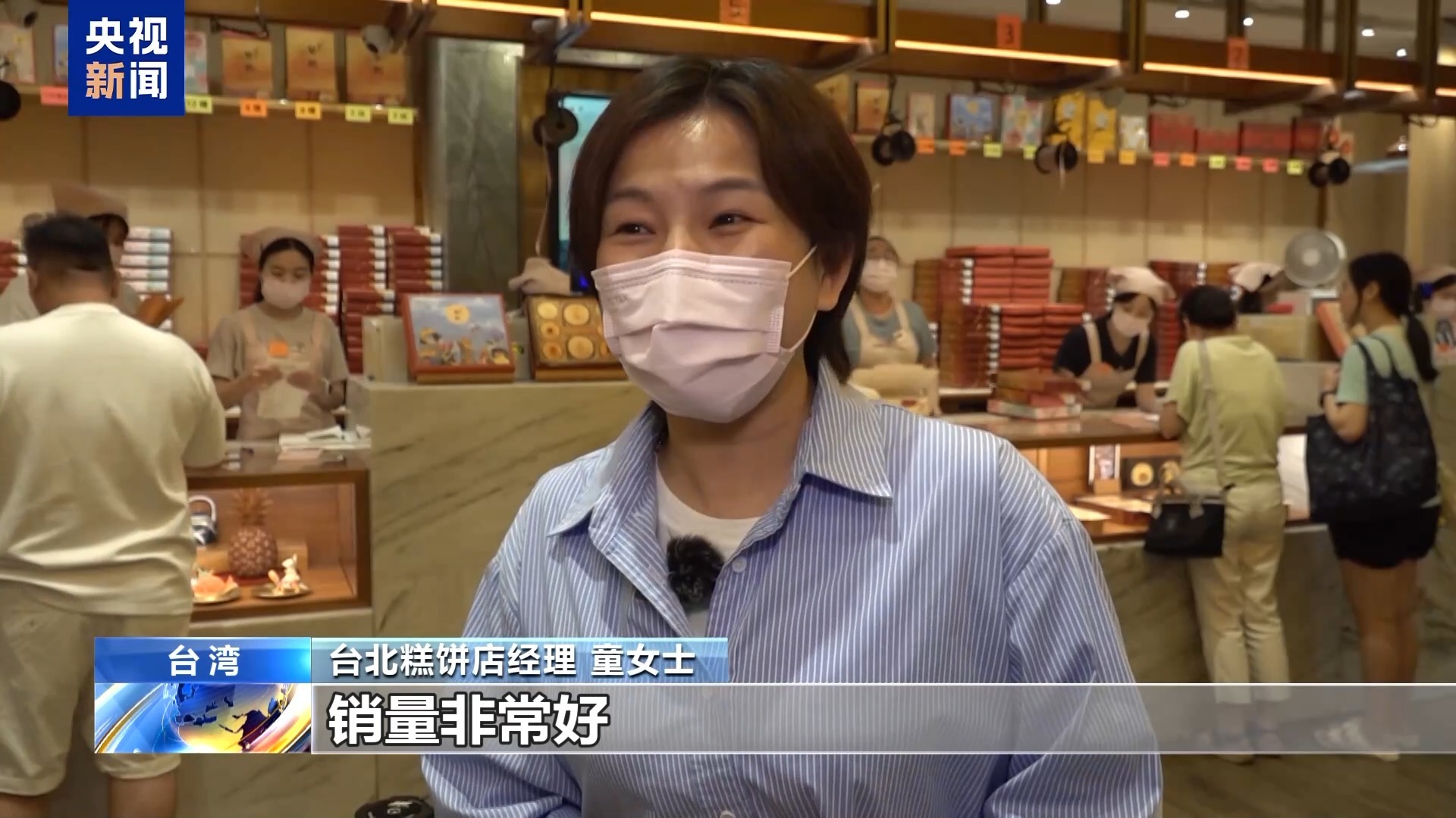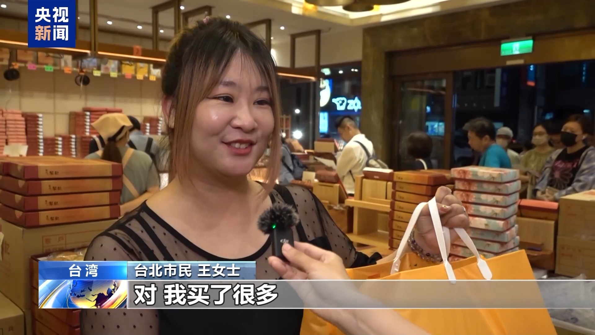 台北市民 王女士:对,我买了很多,是要买回去跟家人分享的。因为在外地工作,可以回家跟家人聚会的时间不多。月饼也是一个很重要的伴手礼,大家聚在一起,就像月亮一样,特别圆嘛,像蛋黄酥它也是圆形。所以我就觉得,这代表了团圆和圆满。