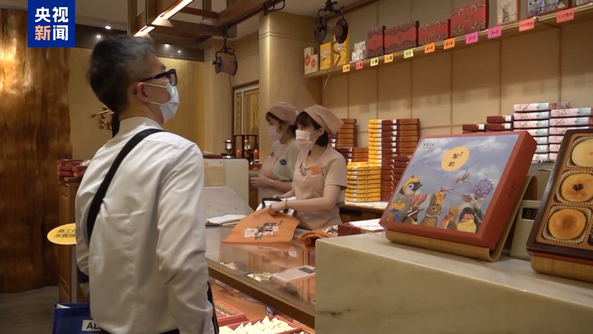 总台记者 韩冰:在台湾,月饼、凤梨酥等传统糕饼是中秋节不可或缺的元素。我身后这家台北老牌点心店的门前排起了长队,很多人都是等候了半小时以上,来挑选心仪的中秋点心。