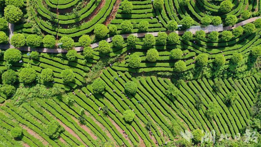 从空中航拍,茶园如同花园。“现在种有机茶,杂草靠锄头除、人工拔,施肥用生物有机肥。”杨代宗边走边说,近几年,随着恩施茶叶知名度的提升和公司的发展,茶叶带动了洞下槽村及周边村村民就业,茶农的收入水涨船高。“以往几十元1斤的鲜叶,现在收100元1斤。茶厂常年有50人工作,忙时有200多人。”