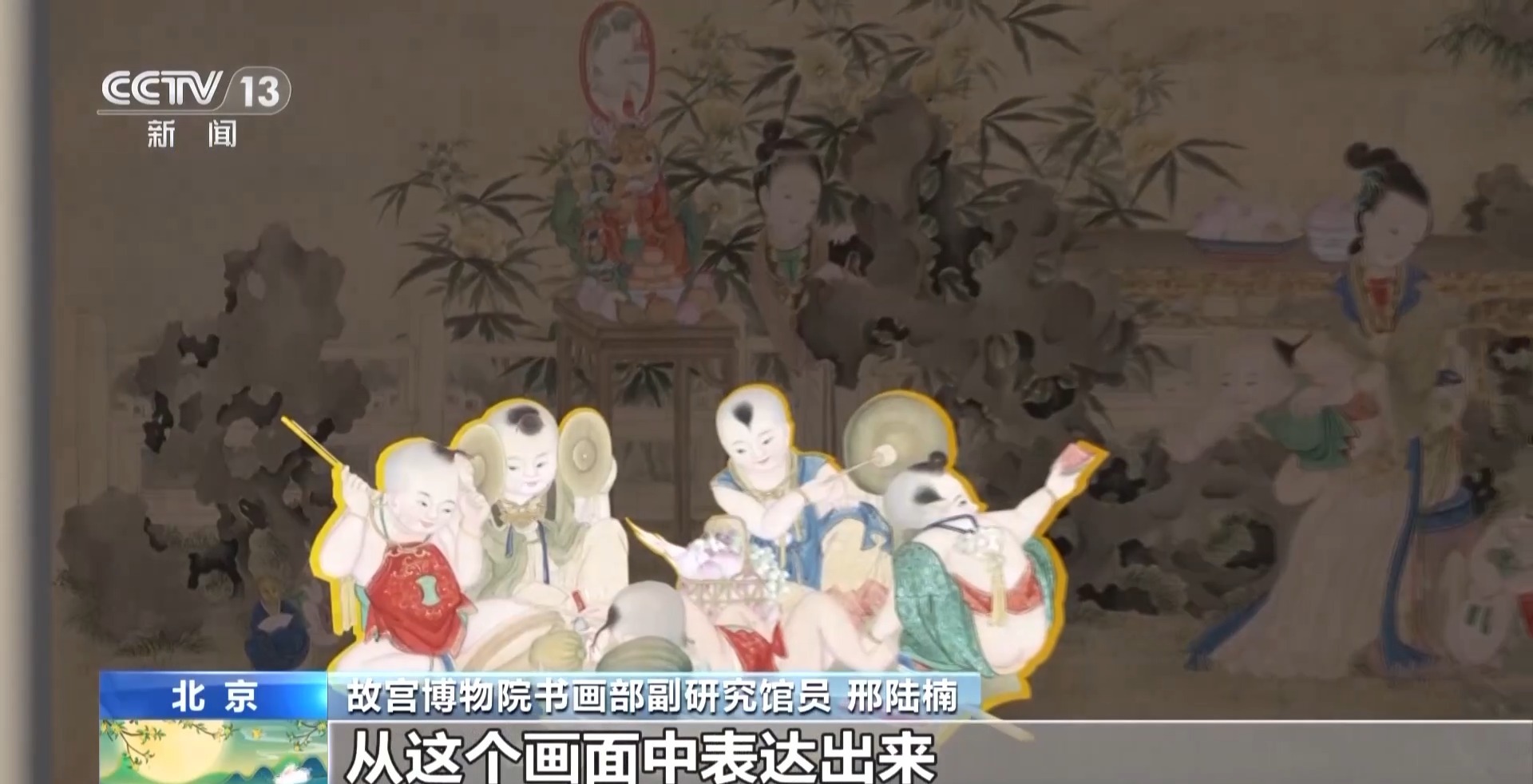 故宫博物院书画部副研究馆员 邢陆楠:我们可以看到,几个孩子正在敲锣打鼓,似乎有一种音效从画面中表达出来。