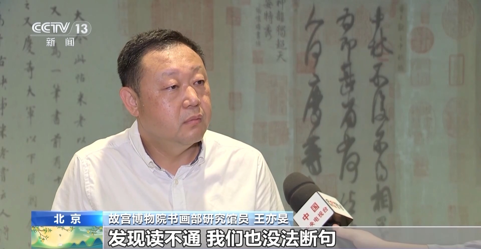 故宫博物院书画部研究馆员 王亦旻:一共是22个字,可能很多人看过原文,发现读不通,我们也没法断句。