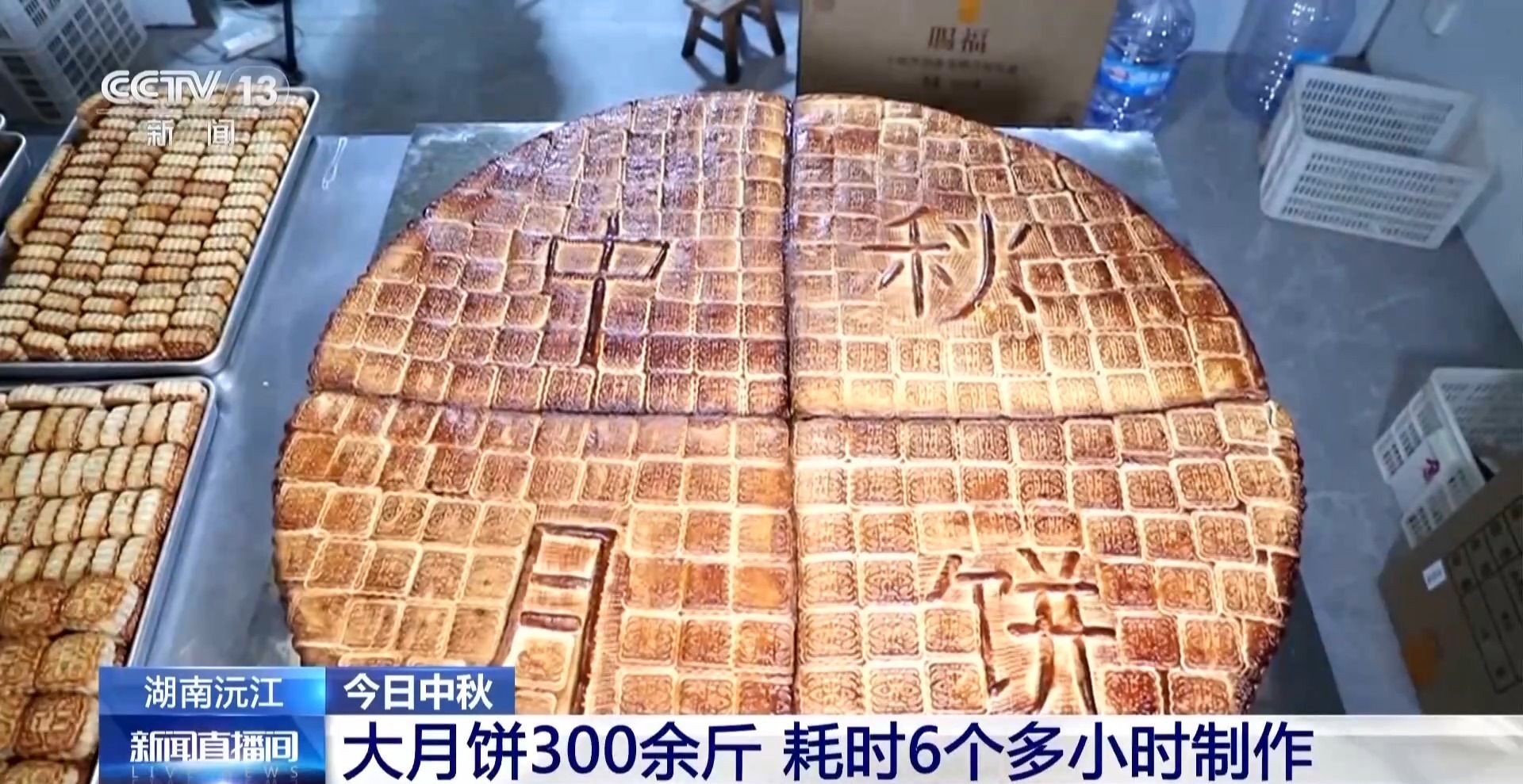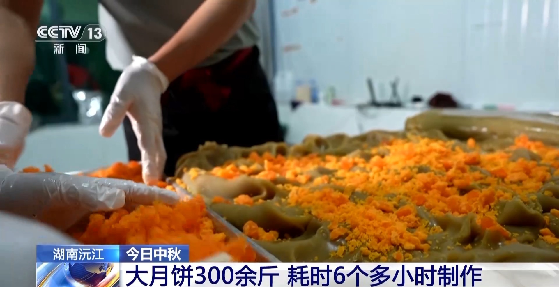 中秋节期间,各地开展了形式多样的庆祝活动。在湖南沅江四季红镇阳雀洪村,当地村民花了6个多小时,制作了一个300多斤的大月饼,准备在中秋之夜,大家同吃月饼,共赏明月。