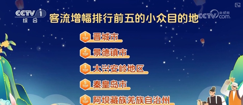 特色小众旅游目的地人气飙升,晋城、景德镇、大兴安岭地区、秦皇岛、阿坝藏族羌族自治州,成为客流增幅排行前五的小众目的地。