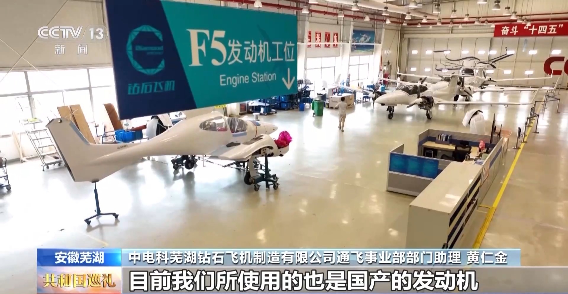 中电科芜湖钻石飞机制造有限公司通飞事业部部门助理 黄仁金:目前我们所使用的也是国产发动机,而且它有强劲的动力,它最大的输出功率可以达到123.5千瓦。这款发动机是全自主研发,解决了国内这个发动机的卡脖子问题。