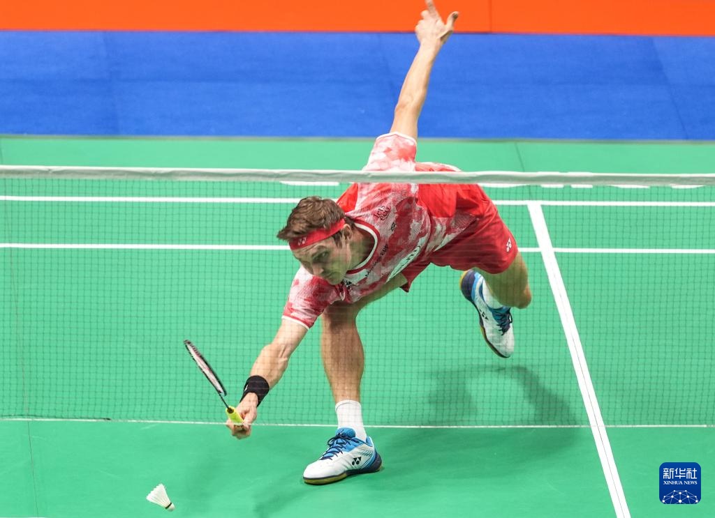 当日,在江苏省常州市举行的2024中国羽毛球公开赛男子单打首轮比赛中,中国选手雷兰曦2比1战胜丹麦选手安赛龙,晋级次轮。