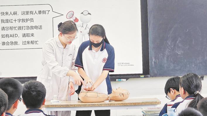 为积极响应2024年全国科普日与第25个“世界急救日”号召,湖北省肿瘤医院的14名医护人员近期走进武汉市洪山区实验外国语中学和傅家坡小学,通过模拟中暑、溺水等紧急情况演示了自救互救技能,特别是海姆立克法、心肺复苏术(CPR)的正确操作方法。学生们积极参与,掌握了实用的急救技能。