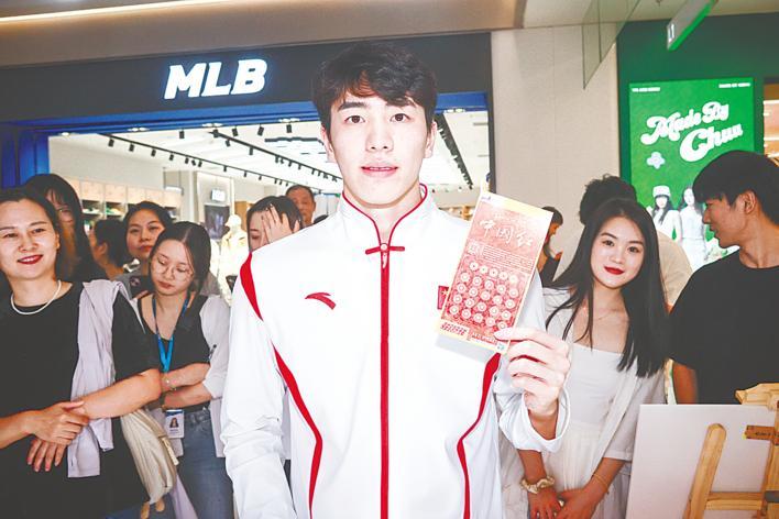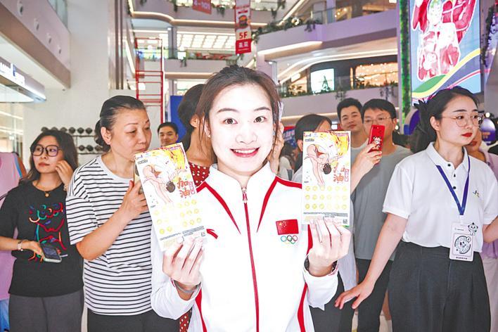 “崽崽,快看,他们都是奥运冠军!”习惯在晚饭后带娃到销品茂逛一逛的李女士,对突如其来的偶遇喜出望外,赶快招呼四岁的儿子过来跟冠军们合影,“没想到能在商场里见到奥运冠军,而且一下就是6位!”