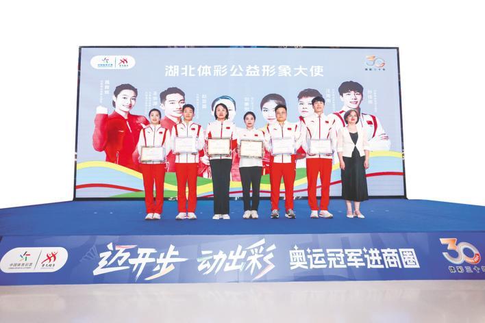 在活动现场,省体彩中心副主任李岚代表湖北体彩与6位奥运冠军签约,并颁发“湖北体彩公益形象大使”聘书。