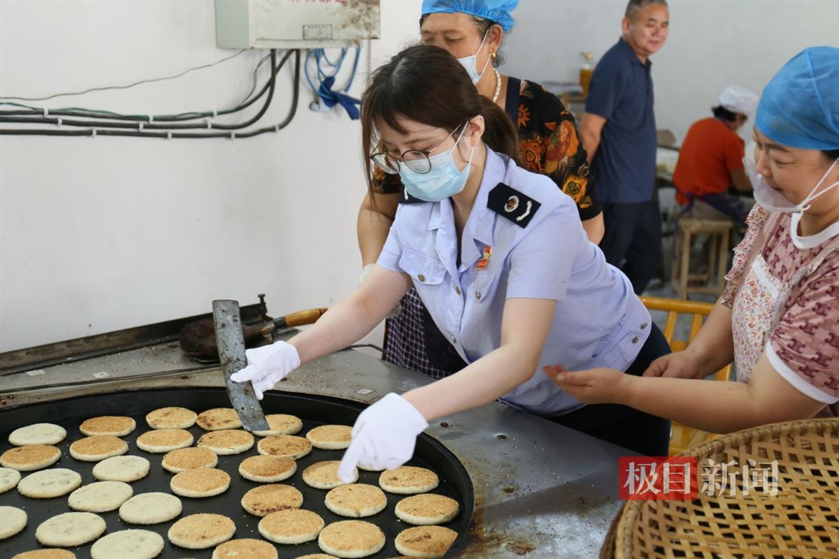 税务青年干部学习着工人师傅们熟练的操作,体验制作传统佳肴,并了解工厂的生产经营情况,宣传支持个体工商户和小微企业发展的税费优惠政策。