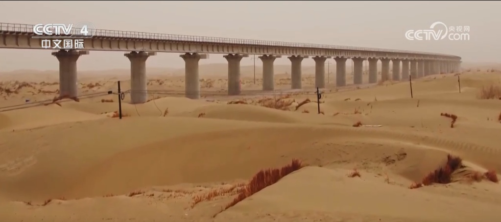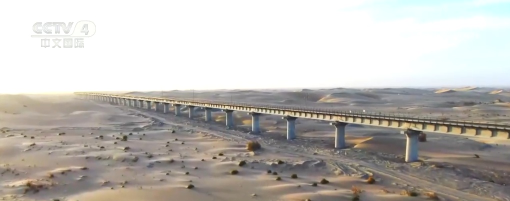 铁轨延绵,一路穿过城市、河流、农田和沙漠,不仅服务上千万各族民众,便利了新疆内外贸易交流和人员往来,也为世界沙漠铁路建设贡献了中国智慧、中国方案。