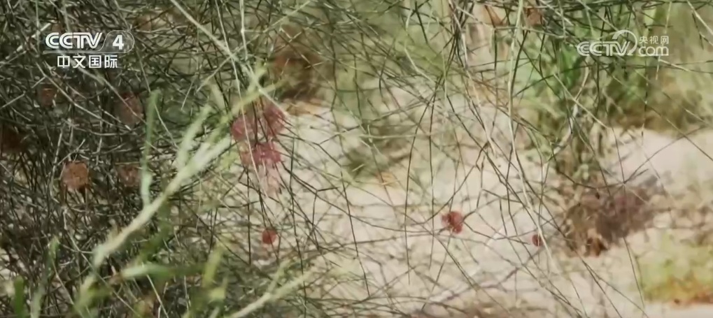 新疆和若铁路有限责任公司综合管理部部长陈健介绍,当时在建设和若铁路过程中采取铁路建设和风沙防护工程同步施工,保证在铁路建设过程中沙不上道。然后,在这里种植灌木,灌木的种类有梭梭、红柳,还有沙拐枣。全线280km的植物防沙地段,共打了131口井,而且每口井都配备了智能化设备。
