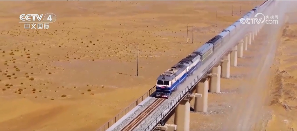 列车飞驰,搭载着人们对美好生活的追求,穿越茫茫沙海,驶向远方。