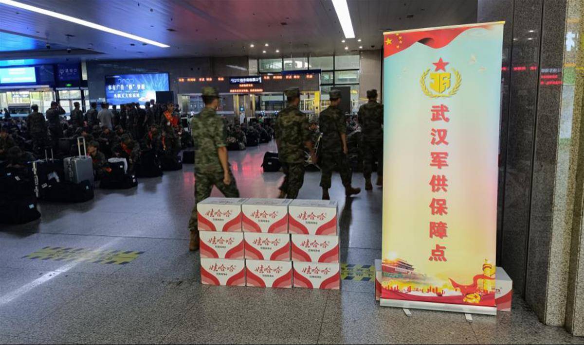 武汉军供站负责人说:“新兵是军队的新鲜血液,为他们提供坚强的保障是我们的职责。经过中转‘第一站’,让子弟兵带着满满的温暖和力量开启军旅新生涯。”