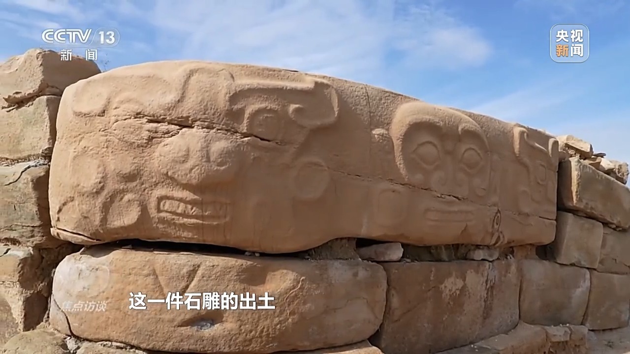 陕西省考古研究院研究馆员、石峁考古队副队长 邵晶:它本身设计的就是一个圆弧形拐角的形状。这件石雕的出土,进一步证明了这批石雕就是石峁人为最核心区域皇城台所制作和使用。