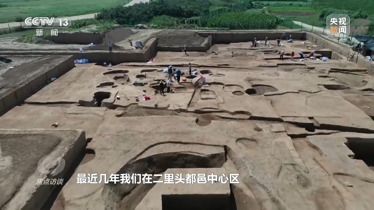 中国社会科学院考古研究所二里头考古队队长 赵海涛:最近几年我们在二里头都邑中心区发现多条主干道路以及两边的夯土围墙,他们把二里头都城划分成多个方正、规整的网格区域。这种网格式布局模式在二里头之前是没有的,说明当时有了成熟发达的统治制度和统治模式,也是我们判断二里头进入王朝国家的最重要标志。