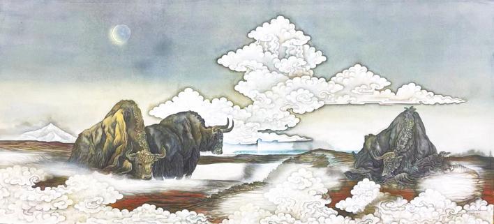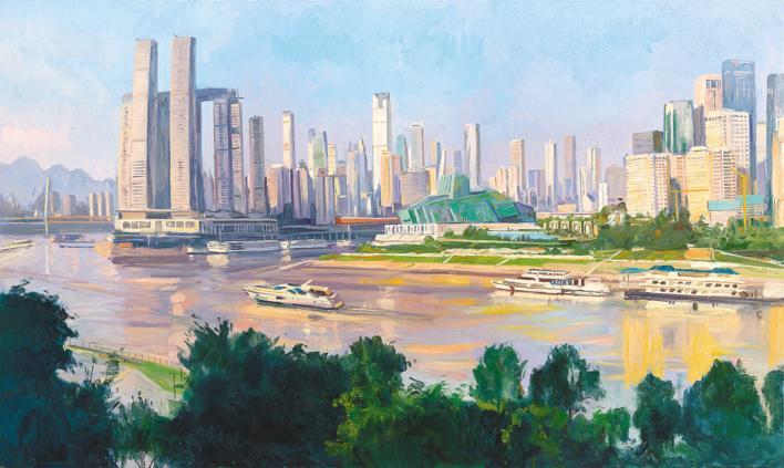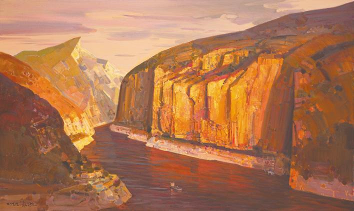西藏自治区美术家协会主席边巴的布面重彩《雪域春风》,以遥远天际中的牦牛为描绘对象,表现雪域高原特有的自然风貌和生态景观。四川大学艺术学院教授朱沙的布面油画《夔门夕照》,选择描绘长江代表性地标三峡夔门,着力表现夕照下三峡夔门的壮丽景色,营造了超越特定时空的氛围。