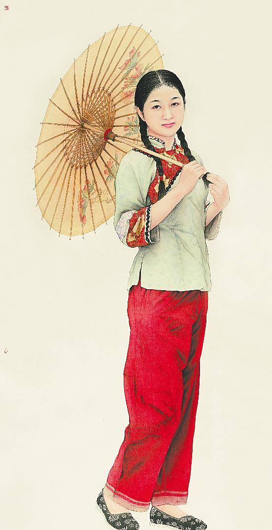 值得一提的是,参展作品不乏国内顶尖的精品力作。中国美术家协会主席范迪安的油画《时代新貌》,描绘长江重庆段的新气象;中国国家画院院长刘万鸣的国画《沉静的大自然》,表现国宝大熊猫之趣;中国国家画院原院长卢禹舜的国画《黄鹤楼》,表达对武汉抗疫的感悟。湖北著名画家周韶华的纸本水墨《造化铸成铁壁图》,对峡江风光进行了笔墨转换,以干湿笔法皴擦的山体呈现巨大的体量,与水墨渲染的长河,形成强烈对比,造成撼人气势;湖北省美术家协会主席李乃蔚的工笔画《撑花》用写实细腻的笔触描绘少女落雨撑伞的情景,雨伞像花,把少女衬托得更加恬静可人。