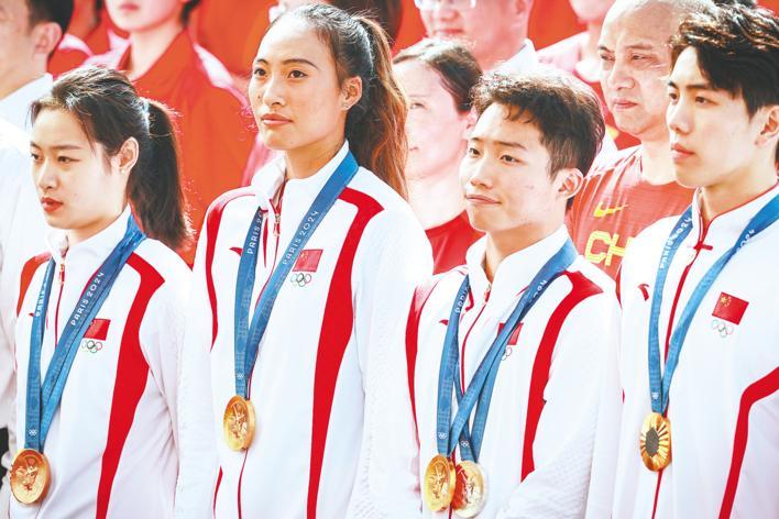 王蒙徽指出,湖北体育健儿在奥运赛场上不畏强手、奋勇争先、屡创佳绩,充分展现了新时代湖北人民的志气、锐气和底气,生动诠释了中华体育精神和奥林匹克精神,实现了运动成绩和精神文明双丰收。我们要大力弘扬体育精神,将其与践行社会主义核心价值观结合起来,与坚定文化自信结合起来,进一步提振自立自信自强的精气神。要深入讲好湖北体育健儿顽强拼搏、勇争第一的精彩故事,激励全省广大干部群众敢为人先、追求卓越,在推进中国式现代化湖北实践中担当作为、建功立业。
