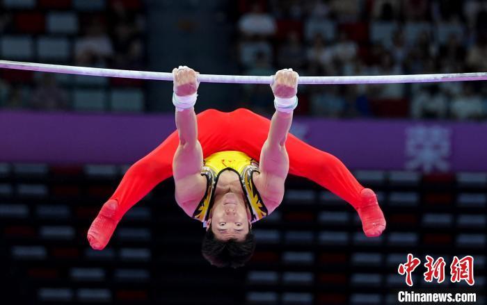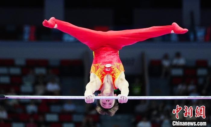 9月20日晚,2024年全国体操冠军赛男子跳马、双杠、单杠、女子平衡木、自由体操单项决赛在成都举行,至此本次全国体操冠军赛圆满收官。图为湖南队选手谭迪在单杠比赛中。中新社记者 安源 摄