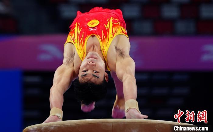 9月20日晚,2024年全国体操冠军赛男子跳马、双杠、单杠、女子平衡木、自由体操单项决赛在成都举行,至此本次全国体操冠军赛圆满收官。图为广东队选手陈志毅在跳马比赛中。中新社记者 安源 摄