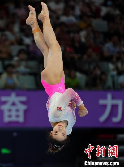 9月20日晚,2024年全国体操冠军赛男子跳马、双杠、单杠、女子平衡木、自由体操单项决赛在成都举行,至此本次全国体操冠军赛圆满收官。图为上海队选手秦心怡在自由体操比赛中。中新社记者 安源 摄