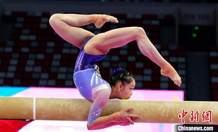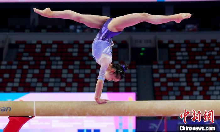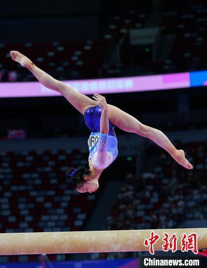 9月20日晚,2024年全国体操冠军赛男子跳马、双杠、单杠、女子平衡木、自由体操单项决赛在成都举行,至此本次全国体操冠军赛圆满收官。图为广东队选手胡嘉菲在平衡木比赛中。中新社记者 安源 摄