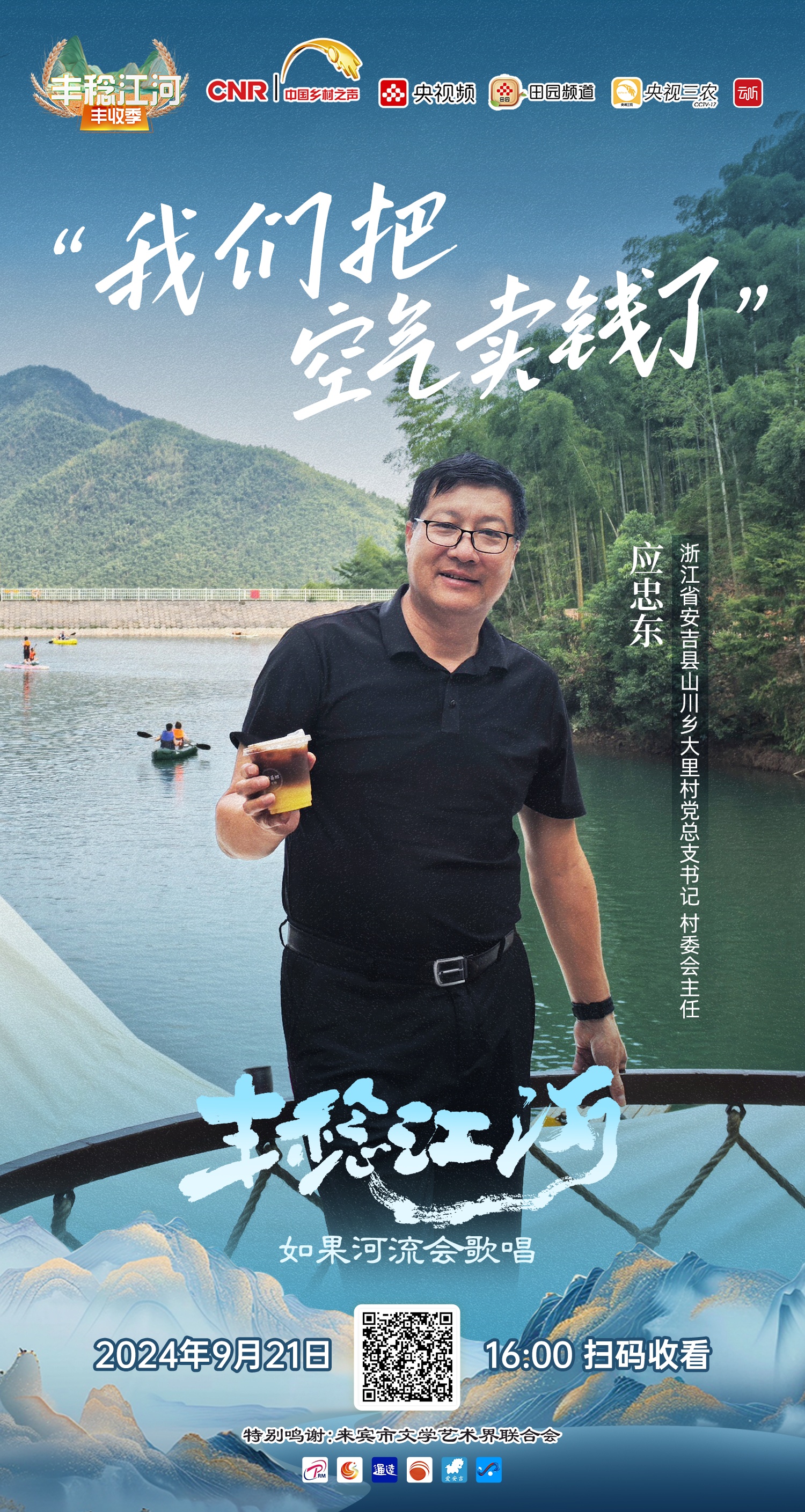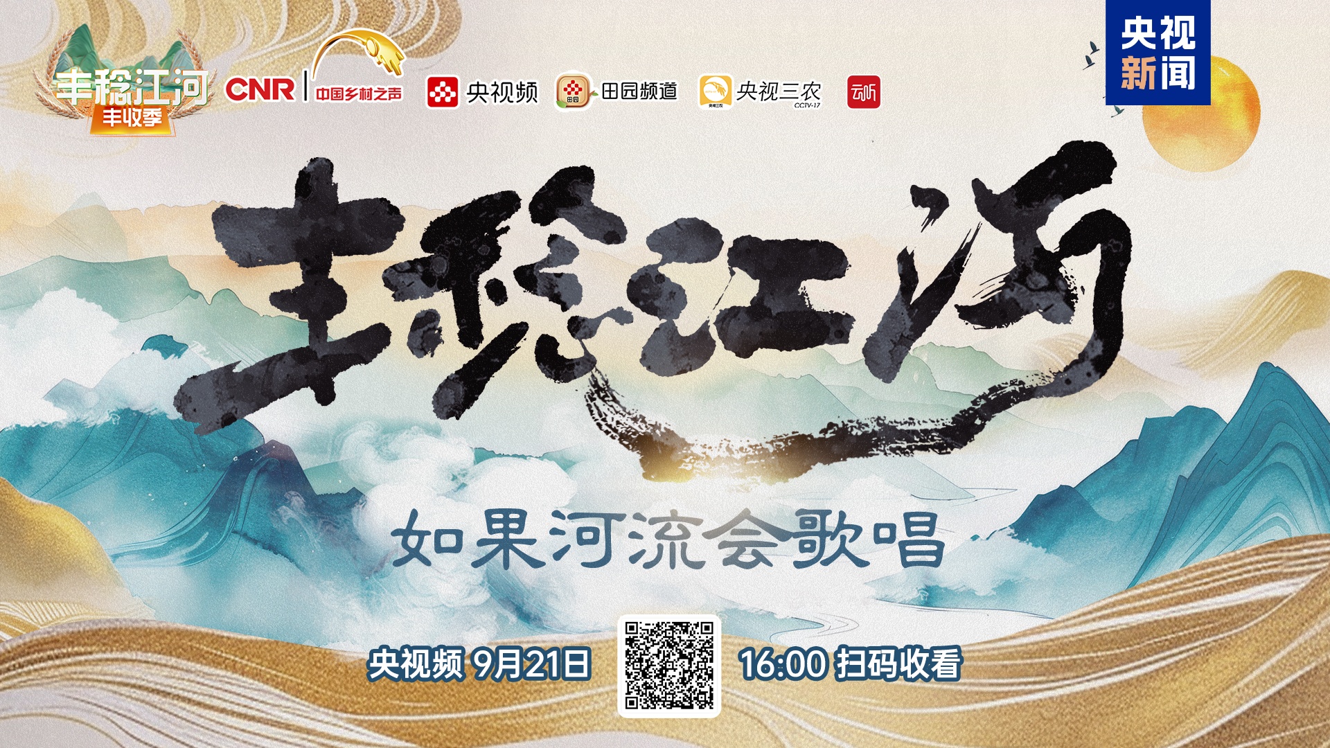 《丰稔江河·如果河流会歌唱》音乐故事会将于9月21日16:00,在“央视三农”全平台、央视频“中国乡村之声”播出。