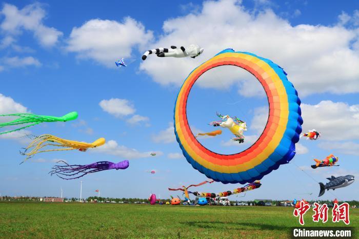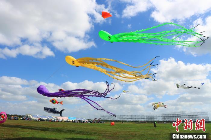 中新网潍坊9月21日电(徐晓宇 孙婷婷)2024潍坊风筝嘉年华暨山东省第11届风筝锦标赛9月21日在潍坊滨海国际风筝放飞场开赛。本次嘉年华以“放飞梦想 拥抱世界”为主题,来自山东省的25支队伍、约130名运动员和裁判员参赛。