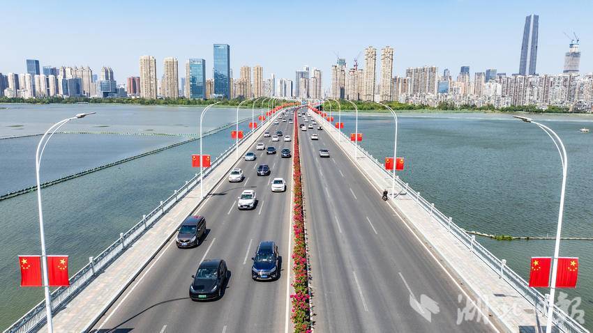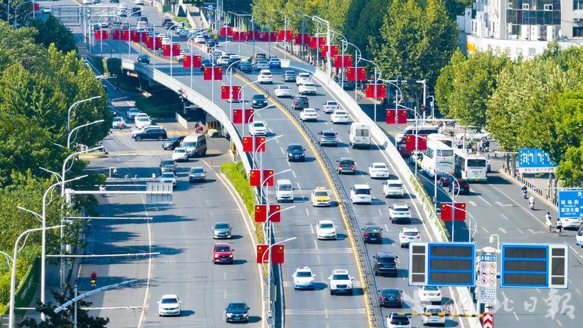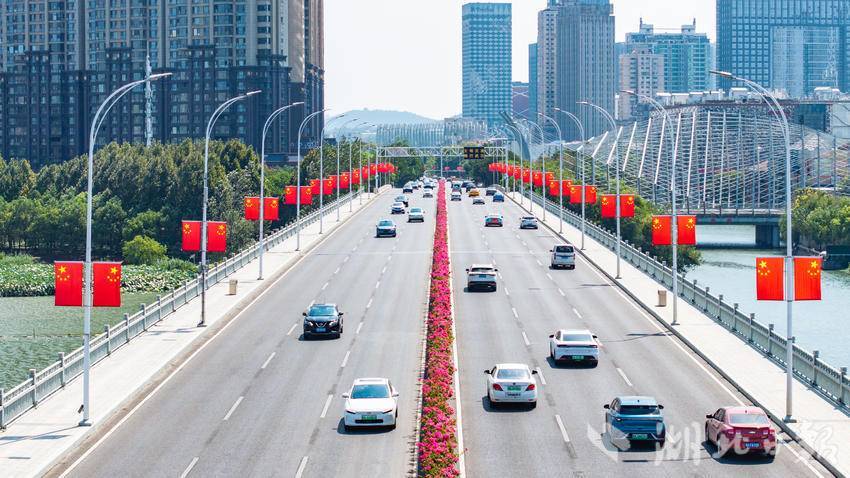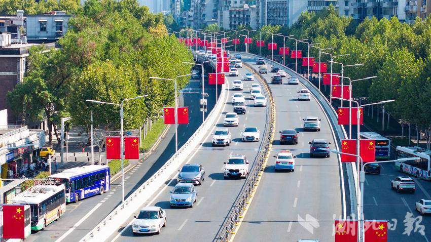 9月22日,国庆节前夕,江城武汉秋高气爽,大街小巷里国旗高挂,五星红旗迎风飘扬,让迎国庆氛围变得愈加浓厚。(湖北日报全媒记者 何宇欣 摄)