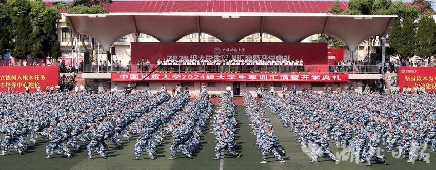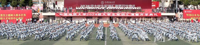 9月22日,中国地质大学(武汉)举行2024级大学生军训汇演暨开学典礼。该校4800多名2024级新生组成34个方阵,进行了分列式,擒敌拳、匕首操等军训成果汇报。在为期14天的军训中,新生们开展了军队队列动作、内务卫生养成、消防安全演练、战场医疗救护、军旅歌曲教唱、中国梦、强国梦、强军梦宣传教育、反诈骗安全防范教育等军训内容,磨砺青春强健体魄,增强国防观念,厚植爱国情怀。