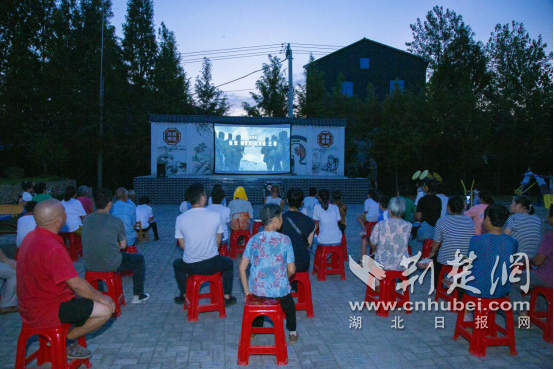 村民们观看电影《长津湖之水门桥》。 通讯员 供图