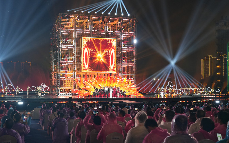 开幕式地点设在衡阳市酃湖公园。现场,绚烂烟花点亮酃湖上空。开场歌舞《衡阳火出圈》以欢快灵动的方式吟唱着古老“火文化”;翩翩之间,舞蹈《云之雁》从“大雁”在云端的飞翔视角,为观众呈现了一场独属于衡阳的文化视觉盛宴;首次登上荧屏的舞剧《王船山》、非遗表演秀《华夏》等节目,通过天地呼应的舞台效果呈现“雁城”浪漫。