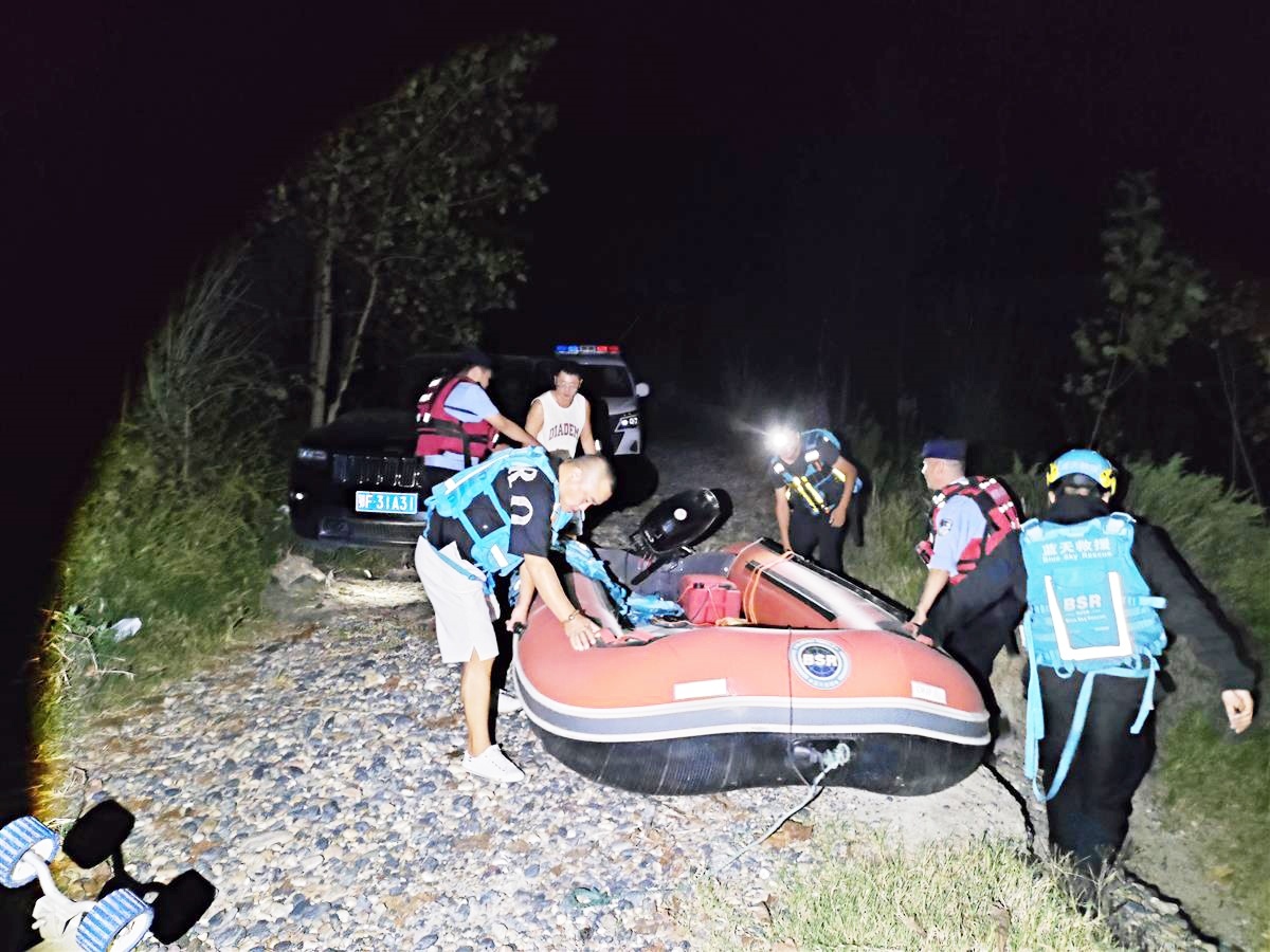 救援人员乘橡皮艇营救 通讯员供图