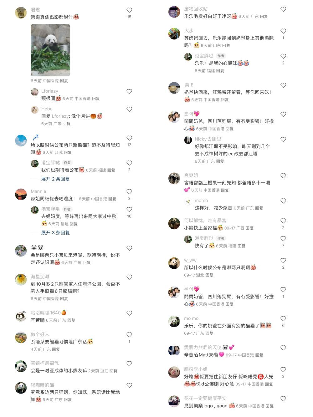 可爱的国宝牵动众多“熊猫迷”的心,随着赠港大熊猫消息的更新,网友们热议的话题从“新熊猫是谁”“新熊猫何时能看到”,变成了“等‘奶爸’回去,乐乐能闻到‘奶爸’身上其他熊味吗”“照顾6只熊猫人手够吗”“给新熊猫起什么新名字”……